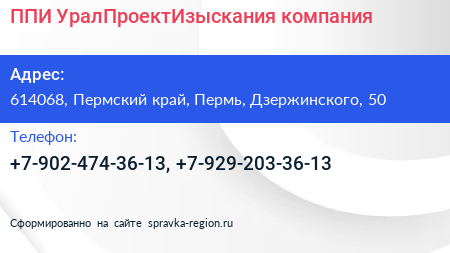 ППИ УралПроектИзыскания, компания по адресу 614068, Пермский край, Пермь, Дзержинского, 50 в дальнейшем Организация, размещена в следующих категориях: