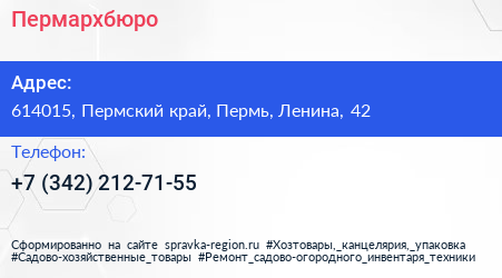 Пермархбюро по адресу 614015, Пермский край, Пермь, Ленина, 42 в дальнейшем Организация, размещена в следующих категориях: