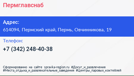Пермглавснаб по адресу 614094, Пермский край, Пермь, Овчинникова, 19 в дальнейшем Организация, размещена в следующих категориях:
