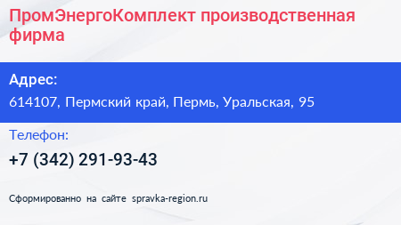 ПромЭнергоКомплект, производственная фирма по адресу 614107, Пермский край, Пермь, Уральская, 95 в дальнейшем Организация, размещена в следующих категориях: