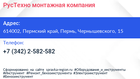 РусТехно, монтажная компания по адресу 614002, Пермский край, Пермь, Чернышевского, 15 в дальнейшем Организация, размещена в следующих категориях: