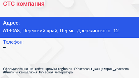 СТС, компания по адресу 614068, Пермский край, Пермь, Дзержинского, 12 в дальнейшем Организация, размещена в следующих категориях:
