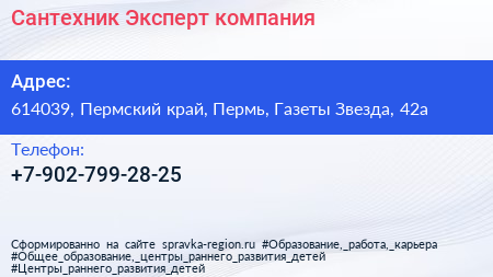 Сантехник Эксперт, компания по адресу 614039, Пермский край, Пермь, Газеты Звезда, 42а в дальнейшем Организация, размещена в следующих категориях: