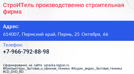 СтроИТель, производственно-строительная фирма по адресу 614007, Пермский край, Пермь, 25 Октября, 66 в дальнейшем Организация, размещена в следующих категориях: