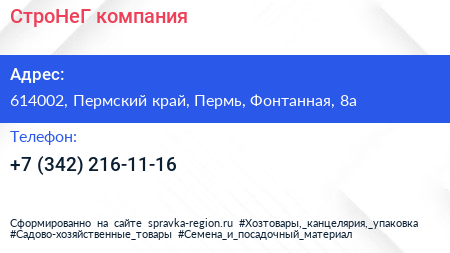 СтроНеГ, компания по адресу 614002, Пермский край, Пермь, Фонтанная, 8а в дальнейшем Организация, размещена в следующих категориях: