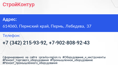 СтройКонтур по адресу 614060, Пермский край, Пермь, Лебедева, 37 в дальнейшем Организация, размещена в следующих категориях: