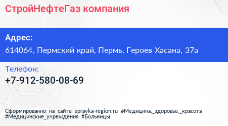 СтройНефтеГаз, компания по адресу 614064, Пермский край, Пермь, Героев Хасана, 37а в дальнейшем Организация, размещена в следующих категориях: