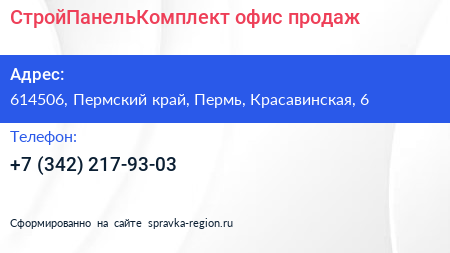 СтройПанельКомплект, офис продаж по адресу 614506, Пермский край, Пермь, Красавинская, 6 в дальнейшем Организация, размещена в следующих категориях: