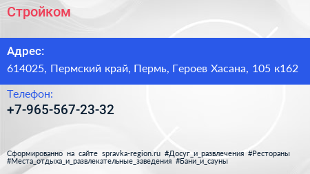 Стройком по адресу 614025, Пермский край, Пермь, Героев Хасана, 105 к162 в дальнейшем Организация, размещена в следующих категориях: