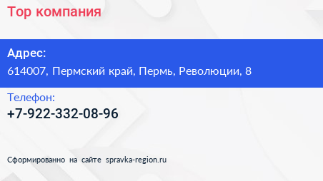 Тор, компания по адресу 614007, Пермский край, Пермь, Революции, 8 в дальнейшем Организация, размещена в следующих категориях: