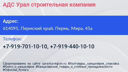 АДС-Урал, строительная компания по адресу 614095, Пермский край, Пермь, Мира, 45а в дальнейшем Организация, размещена в следующих категориях: