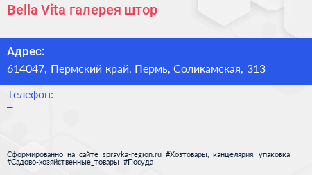 Bella Vita, галерея штор по адресу 614047, Пермский край, Пермь, Соликамская, 313 в дальнейшем Организация, размещена в следующих категориях: