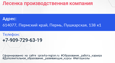 Лесенка, производственная компания по адресу 614077, Пермский край, Пермь, Пушкарская, 138 к1 в дальнейшем Организация, размещена в следующих категориях: