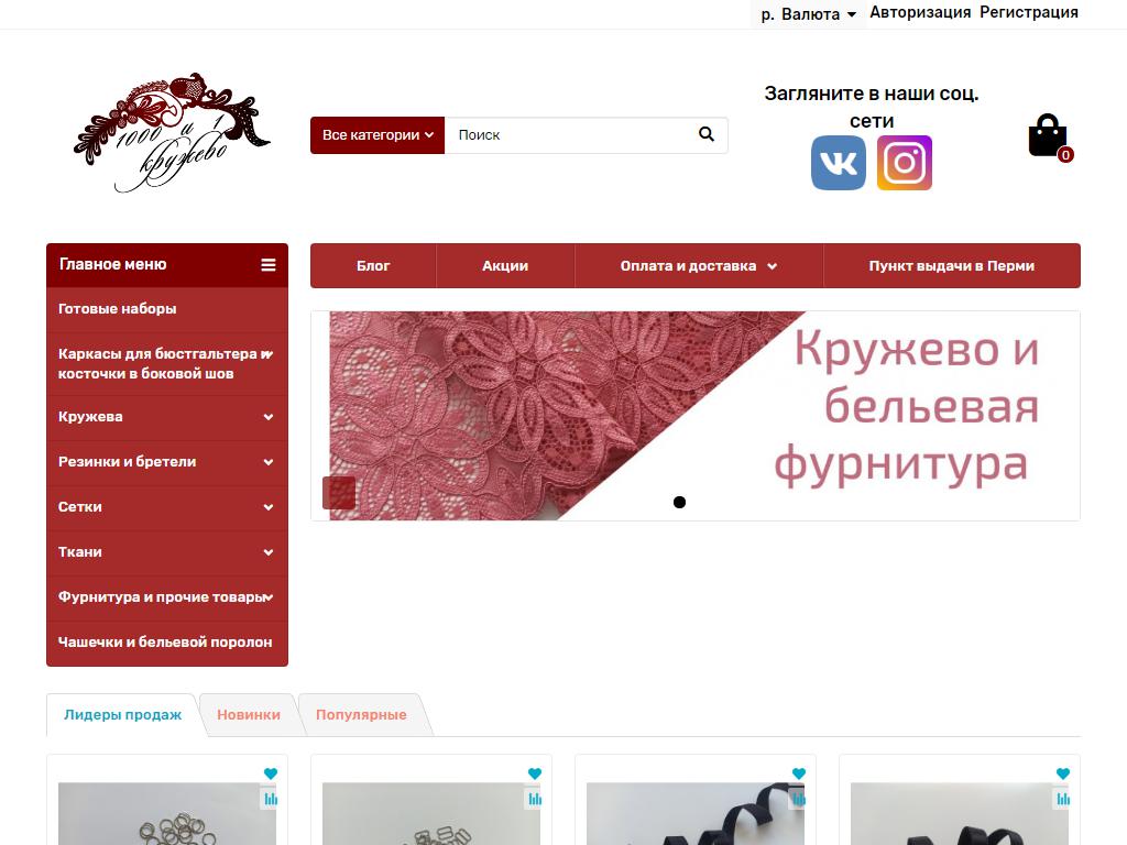 Тысяча и одно кружево, интернет-магазин кружева и бельевой фурнитуры по адресу 614036, Пермский край, Пермь, Одоевского, 20 в дальнейшем Организация, размещена в следующих категориях: