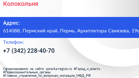 Колокольня по адресу 614088, Пермский край, Пермь, Архитектора Свиязева, 19е в дальнейшем Организация, размещена в следующих категориях: