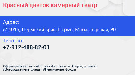 Красный цветок, камерный театр по адресу 614015, Пермский край, Пермь, Монастырская, 90 в дальнейшем Организация, размещена в следующих категориях: