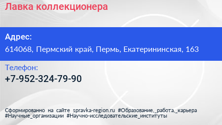 Лавка коллекционера по адресу 614068, Пермский край, Пермь, Екатерининская, 163 в дальнейшем Организация, размещена в следующих категориях: