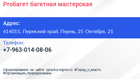 Proбагет, багетная мастерская по адресу 614015, Пермский край, Пермь, 25 Октября, 21 в дальнейшем Организация, размещена в следующих категориях: