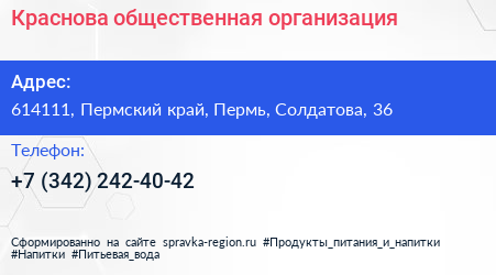 Краснова, общественная организация по адресу 614111, Пермский край, Пермь, Солдатова, 36 в дальнейшем Организация, размещена в следующих категориях: