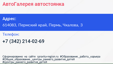 АвтоГалерея, автостоянка по адресу 614083, Пермский край, Пермь, Чкалова, 3 в дальнейшем Организация, размещена в следующих категориях: