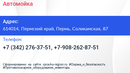 Автомойка по адресу 614014, Пермский край, Пермь, Соликамская, 87 в дальнейшем Организация, размещена в следующих категориях: