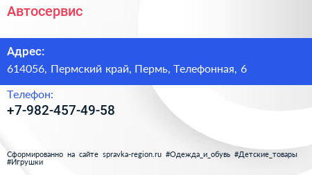 Автосервис по адресу 614056, Пермский край, Пермь, Телефонная, 6 в дальнейшем Организация, размещена в следующих категориях: