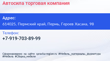 Автосила, торговая компания по адресу 614025, Пермский край, Пермь, Героев Хасана, 98 в дальнейшем Организация, размещена в следующих категориях:
