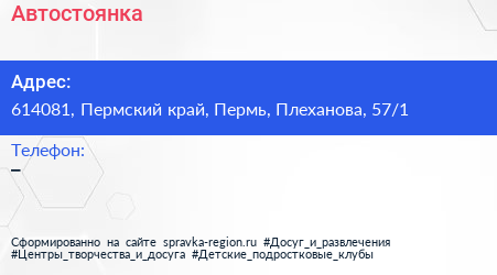 Автостоянка по адресу 614081, Пермский край, Пермь, Плеханова, 57/1 в дальнейшем Организация, размещена в следующих категориях: