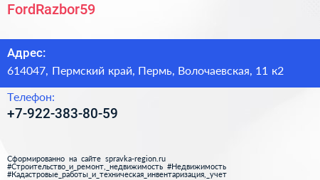 FordRazbor59 по адресу 614047, Пермский край, Пермь, Волочаевская, 11 к2 в дальнейшем Организация, размещена в следующих категориях: