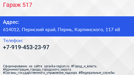 Гараж 517 по адресу 614012, Пермский край, Пермь, Карпинского, 117 к8 в дальнейшем Организация, размещена в следующих категориях: