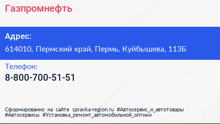 Газпромнефть по адресу 614010, Пермский край, Пермь, Куйбышева, 113Б в дальнейшем Организация, размещена в следующих категориях: