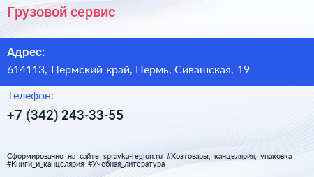 Грузовой сервис по адресу 614113, Пермский край, Пермь, Сивашская, 19 в дальнейшем Организация, размещена в следующих категориях: