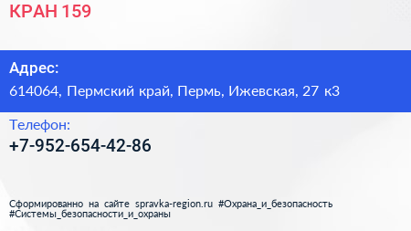 КРАН 159 по адресу 614064, Пермский край, Пермь, Ижевская, 27 к3 в дальнейшем Организация, размещена в следующих категориях: