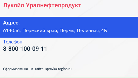 Лукойл-Уралнефтепродукт по адресу 614056, Пермский край, Пермь, Целинная, 4Б в дальнейшем Организация, размещена в следующих категориях: