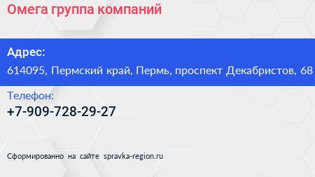 Омега, группа компаний по адресу 614095, Пермский край, Пермь, проспект Декабристов, 68 в дальнейшем Организация, размещена в следующих категориях: