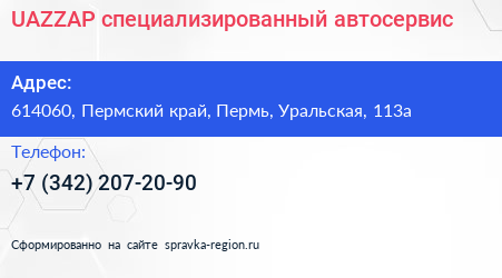 UAZZAP, специализированный автосервис по адресу 614060, Пермский край, Пермь, Уральская, 113а в дальнейшем Организация, размещена в следующих категориях: