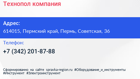 Технопол, компания по адресу 614015, Пермский край, Пермь, Советская, 36 в дальнейшем Организация, размещена в следующих категориях:
