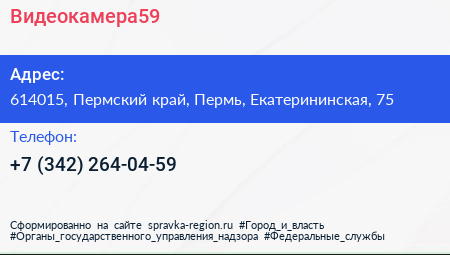 Видеокамера59 по адресу 614015, Пермский край, Пермь, Екатерининская, 75 в дальнейшем Организация, размещена в следующих категориях: