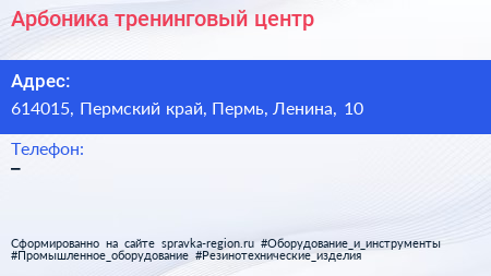 Арбоника, тренинговый центр по адресу 614015, Пермский край, Пермь, Ленина, 10 в дальнейшем Организация, размещена в следующих категориях: