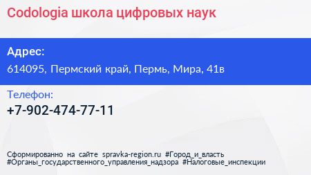 Codologia, школа цифровых наук по адресу 614095, Пермский край, Пермь, Мира, 41в в дальнейшем Организация, размещена в следующих категориях: