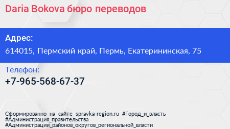 Daria Bokova, бюро переводов по адресу 614015, Пермский край, Пермь, Екатерининская, 75 в дальнейшем Организация, размещена в следующих категориях: