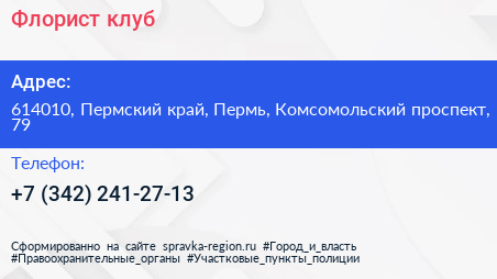 Флорист, клуб по адресу 614010, Пермский край, Пермь, Комсомольский проспект, 79 в дальнейшем Организация, размещена в следующих категориях: