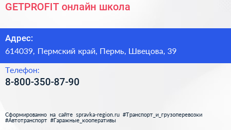 GETPROFIT, онлайн школа по адресу 614039, Пермский край, Пермь, Швецова, 39 в дальнейшем Организация, размещена в следующих категориях: