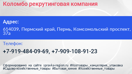 Коломбо, рекрутинговая компания по адресу 614039, Пермский край, Пермь, Комсомольский проспект, 37а в дальнейшем Организация, размещена в следующих категориях: