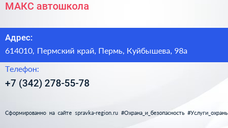 МАКС, автошкола по адресу 614010, Пермский край, Пермь, Куйбышева, 98а в дальнейшем Организация, размещена в следующих категориях: