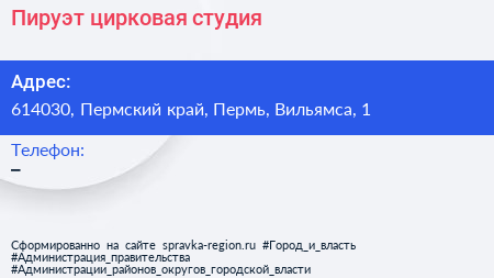 Пируэт, цирковая студия по адресу 614030, Пермский край, Пермь, Вильямса, 1 в дальнейшем Организация, размещена в следующих категориях: