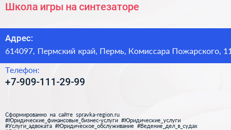 Школа игры на синтезаторе по адресу 614097, Пермский край, Пермь, Комиссара Пожарского, 11 в дальнейшем Организация, размещена в следующих категориях:
