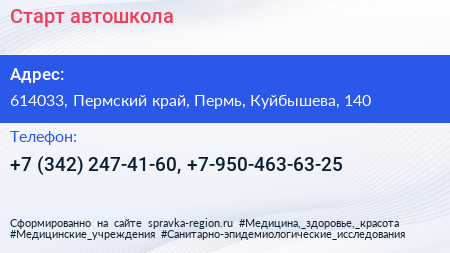 Старт, автошкола по адресу 614033, Пермский край, Пермь, Куйбышева, 140 в дальнейшем Организация, размещена в следующих категориях: