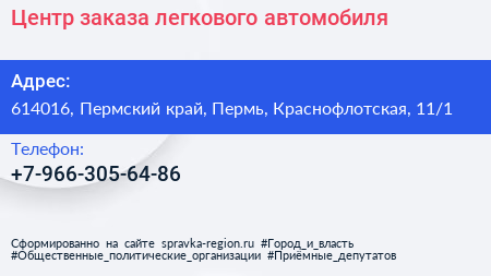 Центр заказа легкового автомобиля по адресу 614016, Пермский край, Пермь, Краснофлотская, 11/1 в дальнейшем Организация, размещена в следующих категориях: