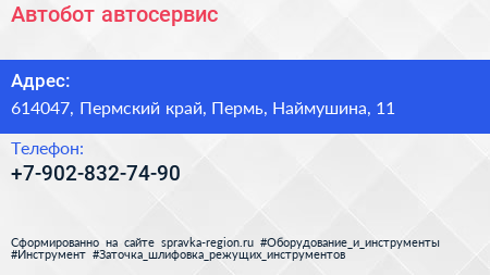 Автобот, автосервис по адресу 614047, Пермский край, Пермь, Наймушина, 11 в дальнейшем Организация, размещена в следующих категориях: